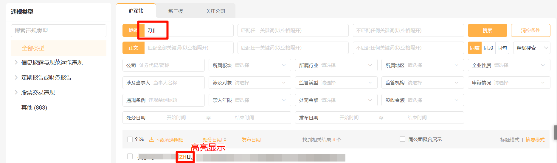 5、问询函、IPO问询函、研报和违规案例检索结果支持大小写敏感高亮。