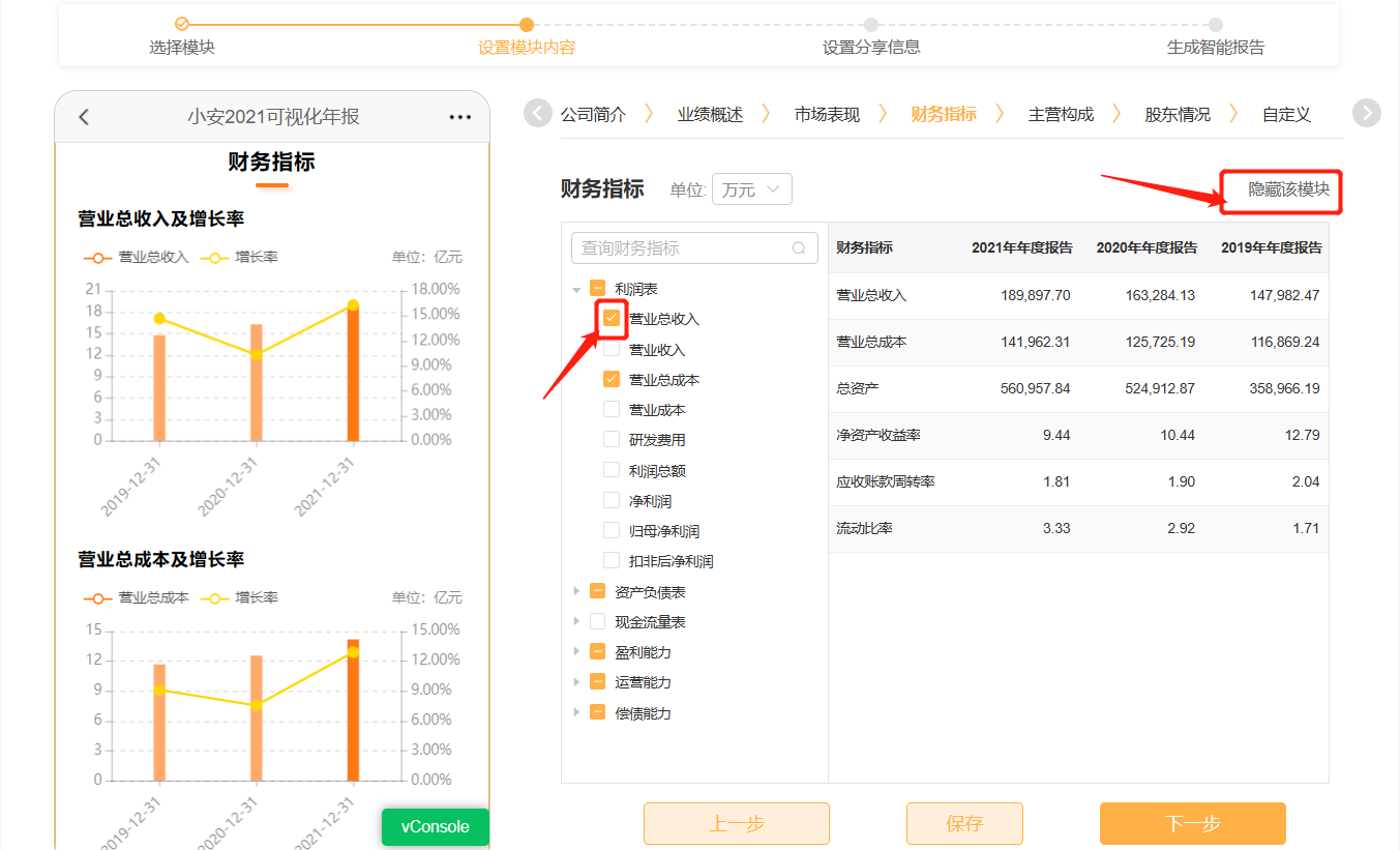 各项模块及指标均支持选择显示或隐藏,让报告内容更加灵活可控。