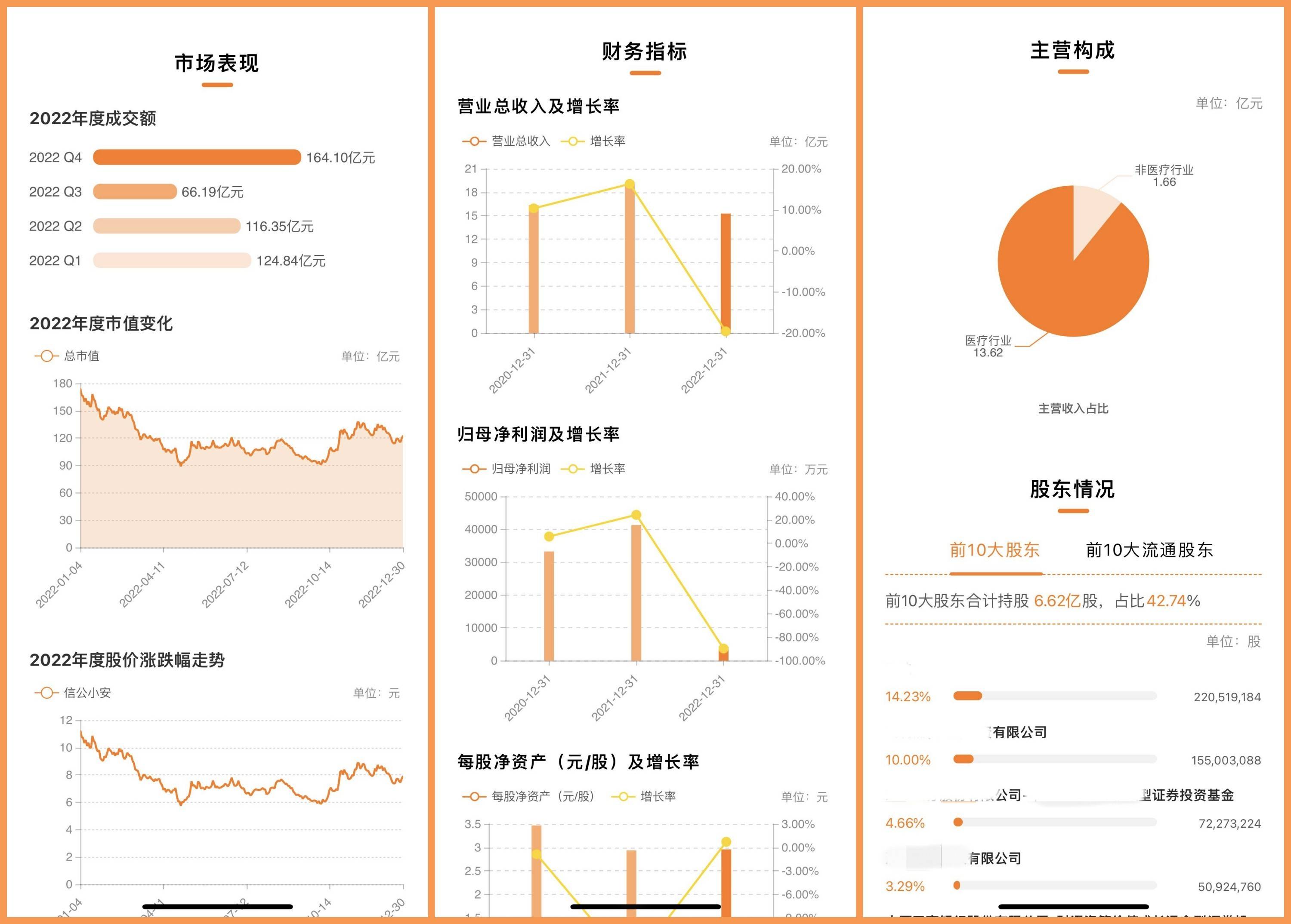 系统提供六大模块,从主要财务指标到公司市场表现再到股东情况,全方面展示公司年度业绩表现。