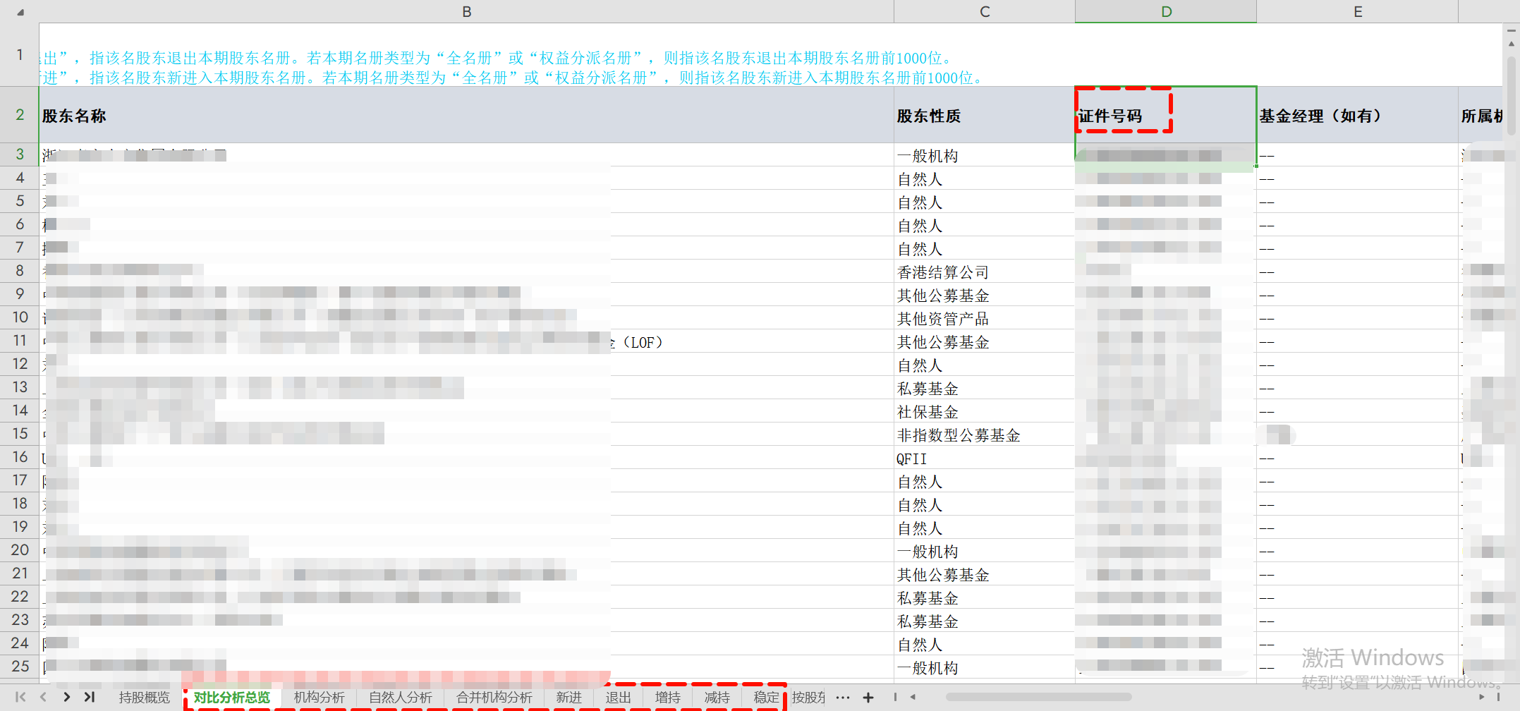 导出数据报表, 导出“股东对比分析”新增“证件号码”字段