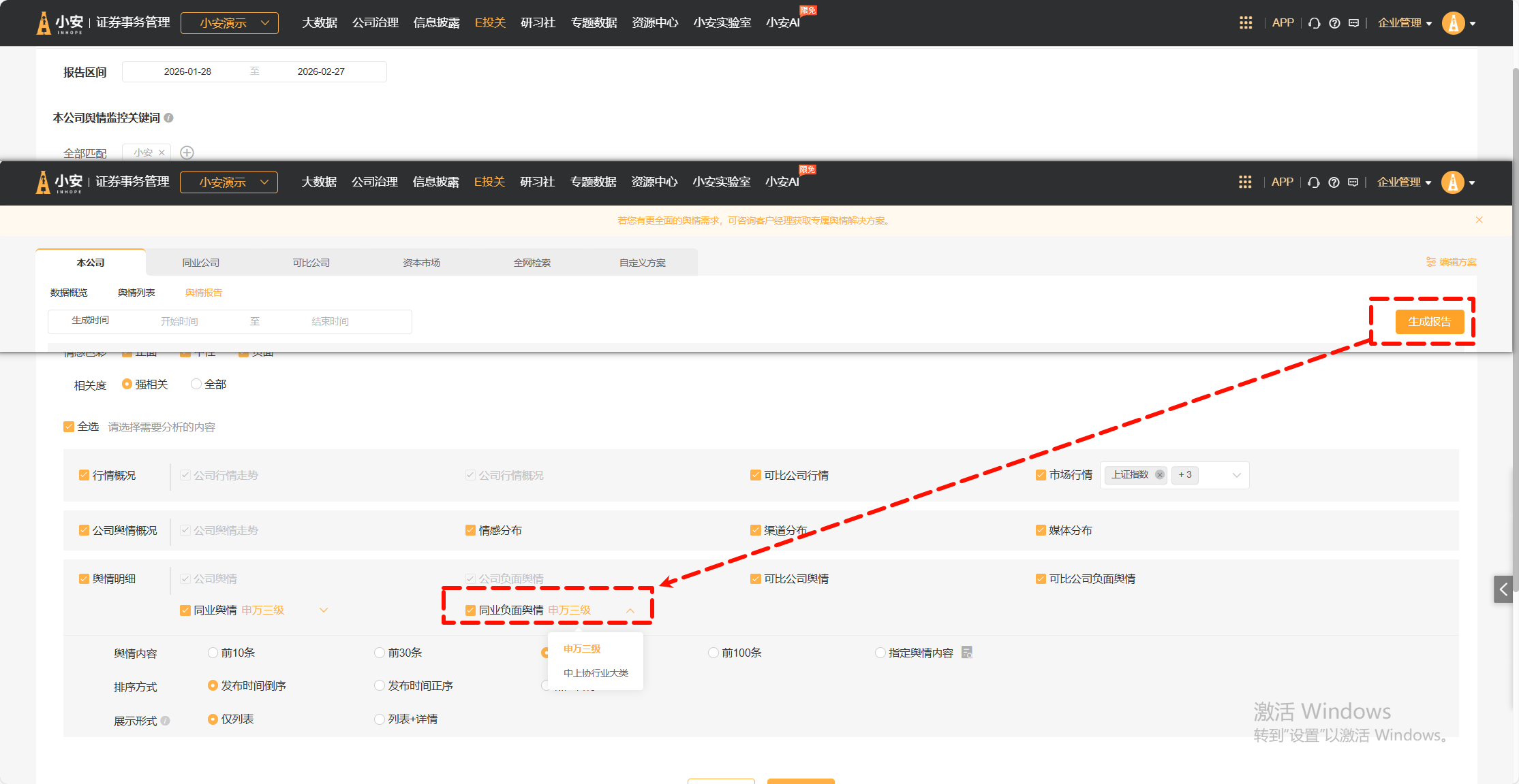 舆情报告新增“同业公司热门负面舆情”,以及支持导出舆情详情