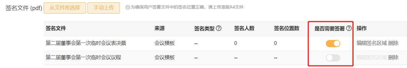 1、【电子签名】:支持上传仅阅读文件,与待签署文件同时发起。使用场景:董办人员同时上传议案文件与表决票文件,并将议案文件标记为“无需签署”,发起后,签署人员可以阅读议案文件,并对表决票文件进行表决签名。