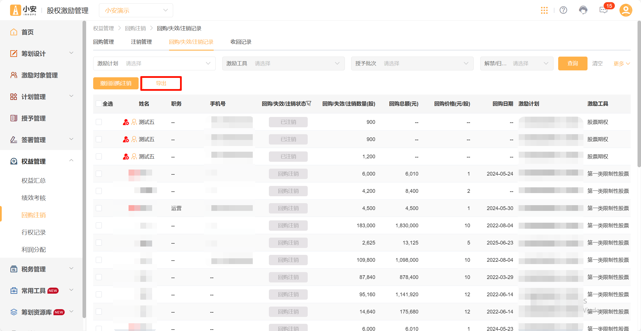 支持导出回购注销记录