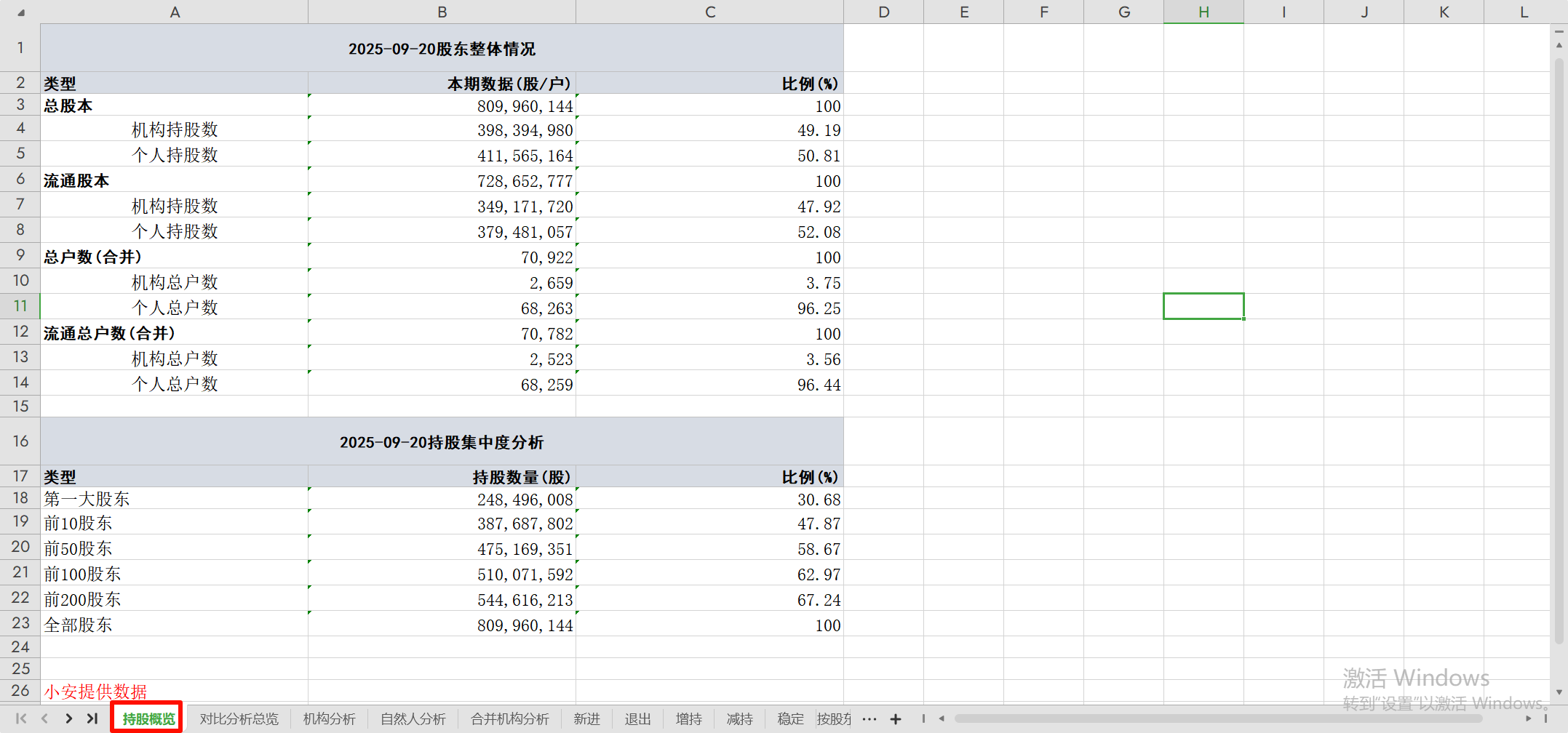 导出数据报表新增“持股概览”sheet页,同时调整sheet页顺序(持股概览、对比分析总览、机构分析、自然人分析、合并机构分析、新进、退出、增持、减持、稳定、按股东性质分析)