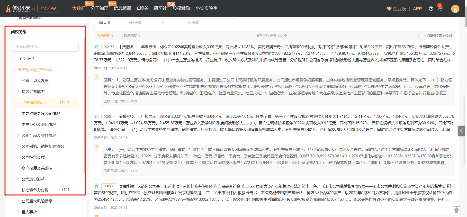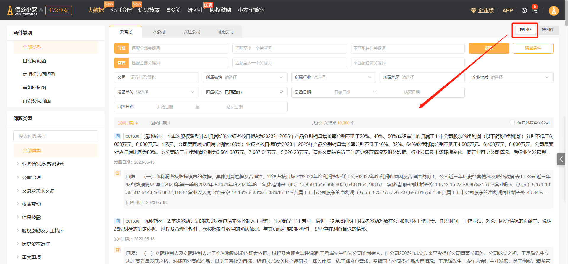 将问询函和回复函中的问答内容进行了拆解匹配,支持以问答形式搜索查看函件详情。