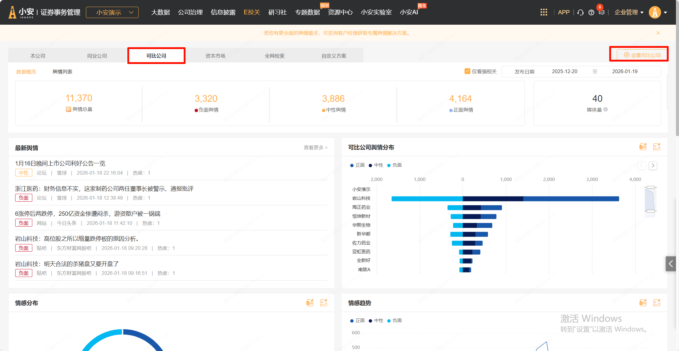进入【可比公司】支持查看管理员设置的可比公司的舆情信息。