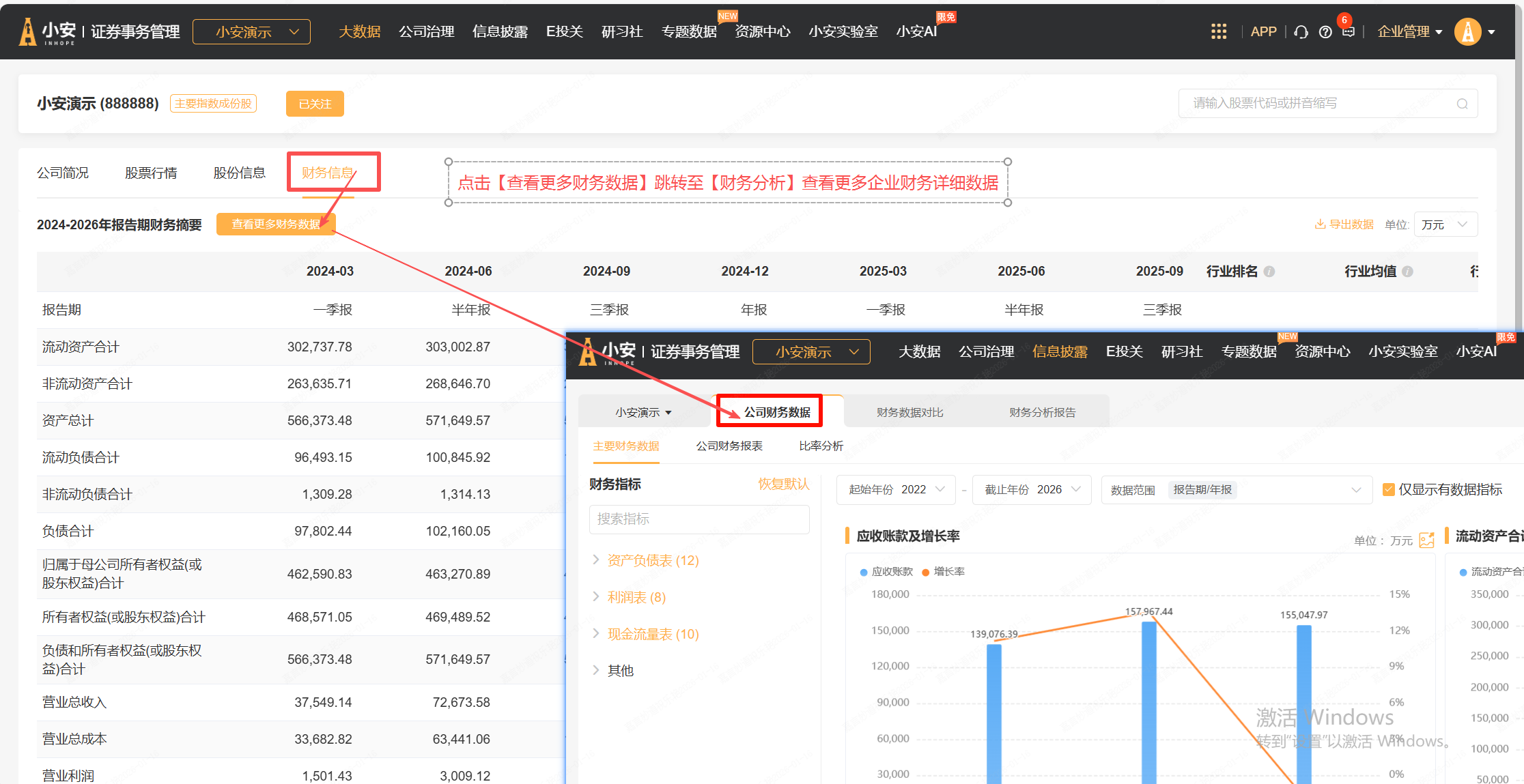 除行情趋势外,小安还支持图表/数据格式查看公司资金流向。