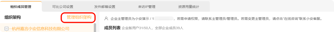 限制说明:对企业组织架构等基础信息仅拥有只读权限(可查看列表,但不可编辑人员或调整架构)。
