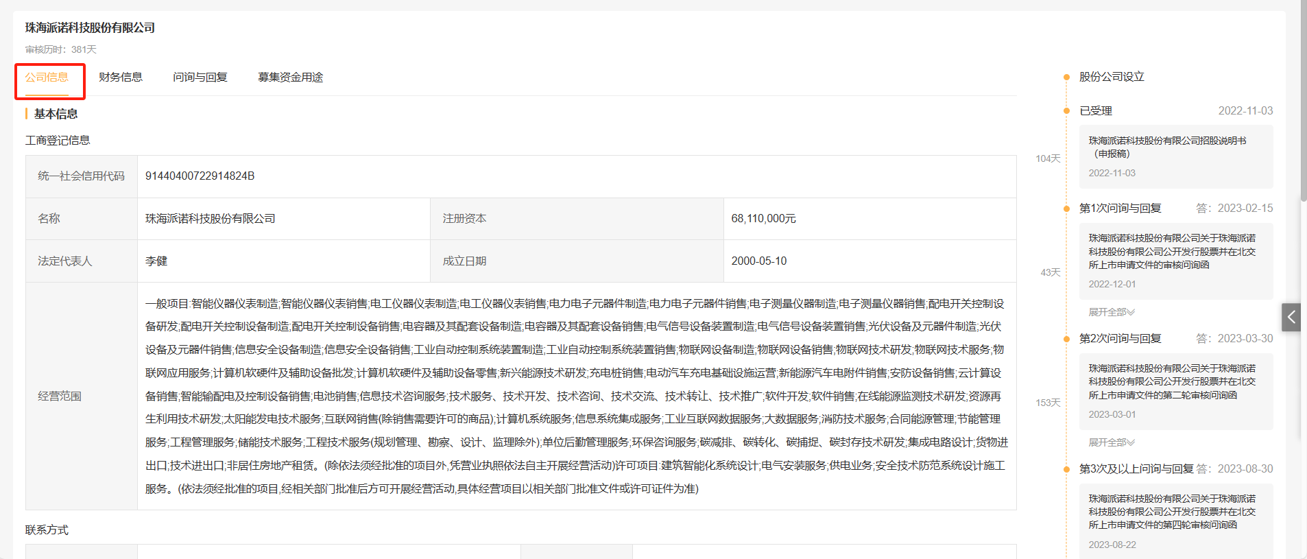 右侧展示了该公司的IPO进程以及各阶段间隔天数,点击进程下的文件名称可以跳转查看详细的IPO相关文件。