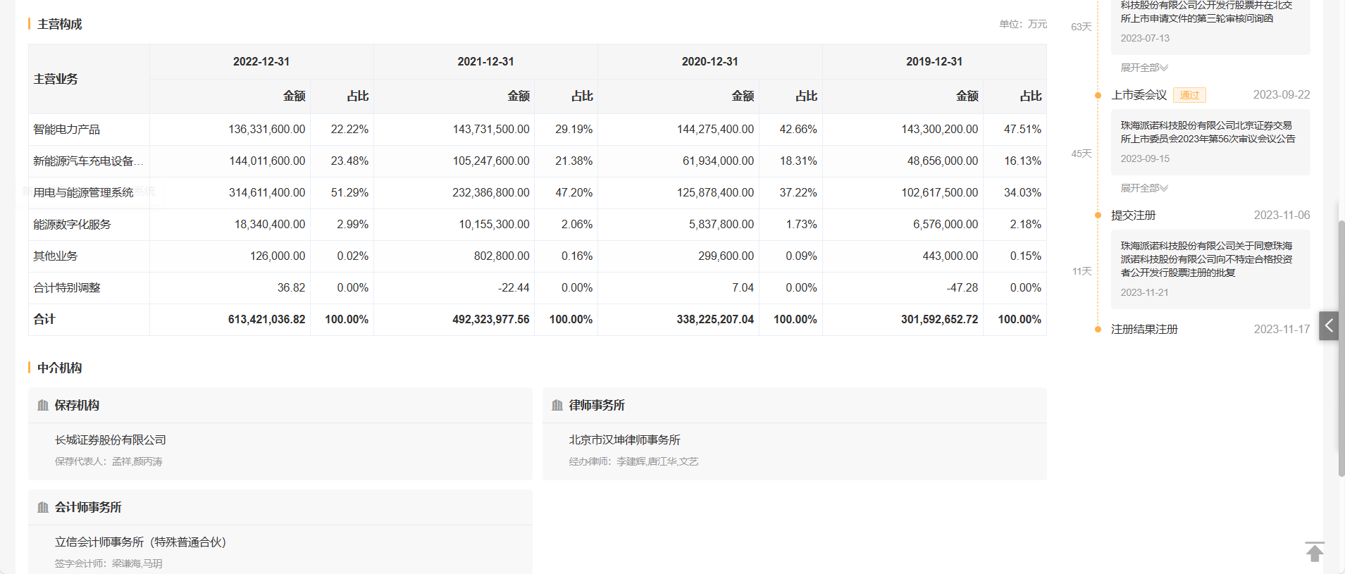 在“公司信息”页面,左侧支持查看公司基本信息、主营构成、中介信息等内容。