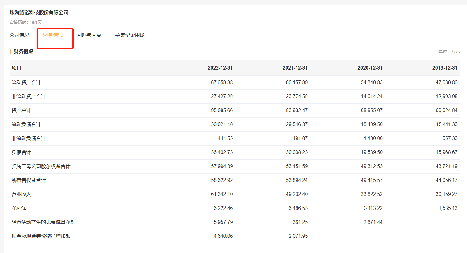 切换至“财务信息”,支持查看公司招股书中披露的财务数据。