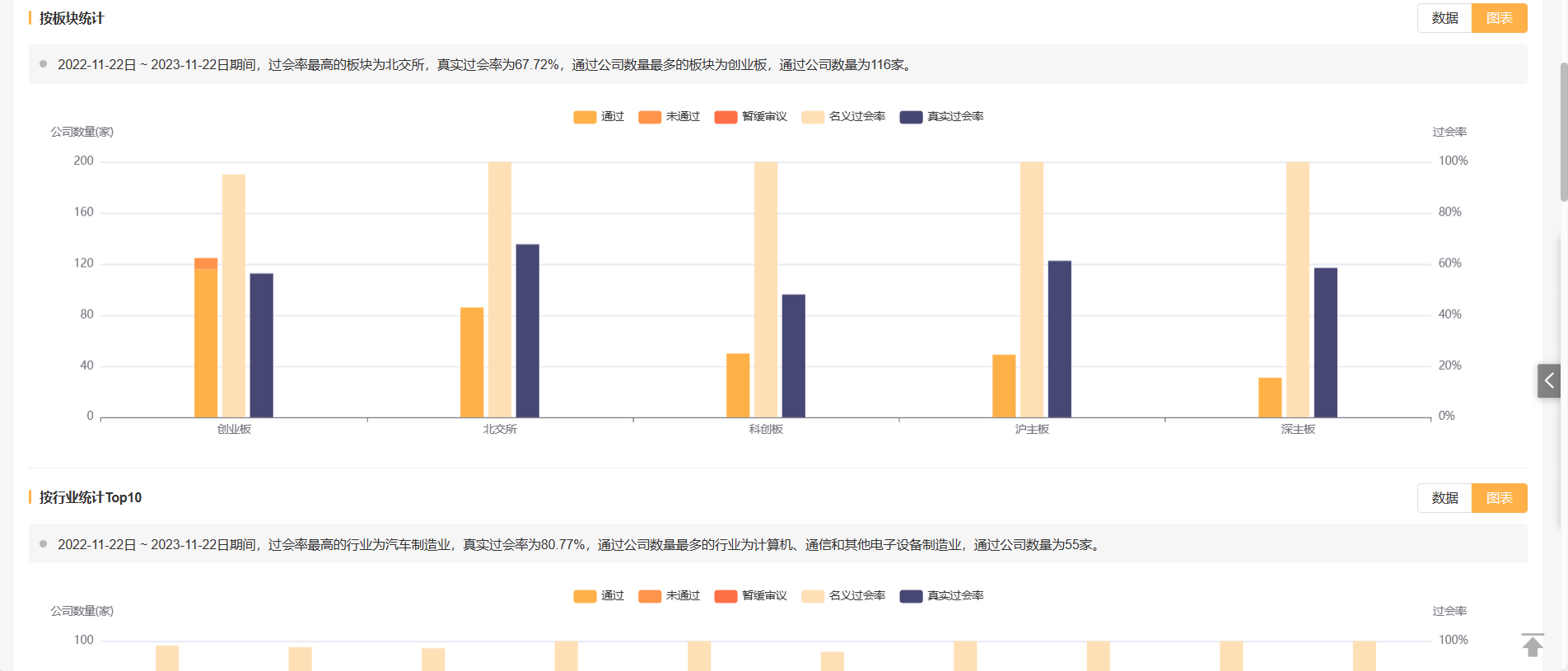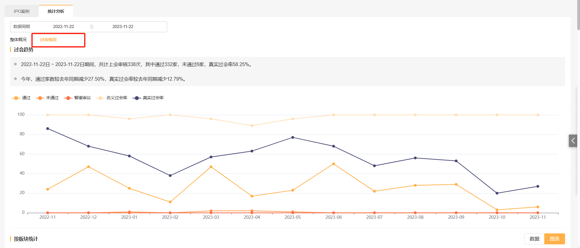 在“过会情况”中,可以查看各审核阶段的公司数量,已了解过会趋势。