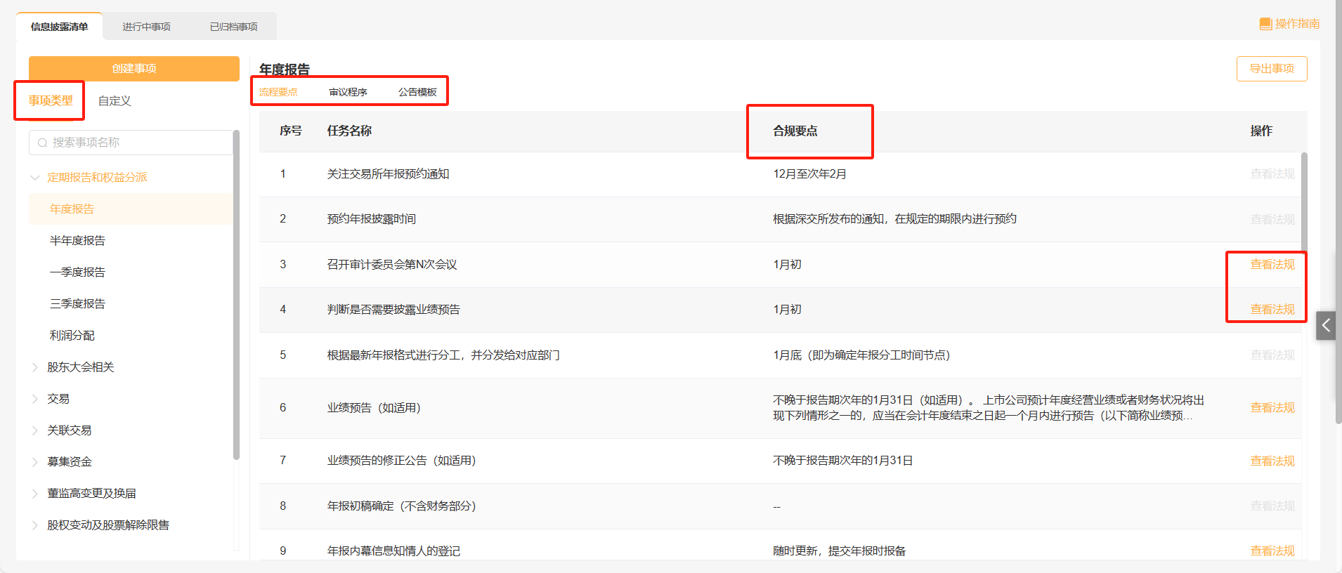 小安的【信披清单】栏目,收集整理了上市公司董办涉及各事务信息披露流程要点和审议程序。并可以根据本公司情况,自定义披露模板。