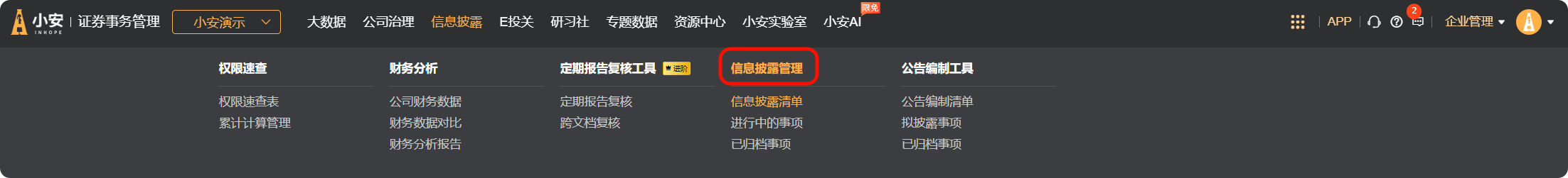 小安的【信息披露管理】栏目,收集整理了上市公司董办涉及各事务信息披露流程要点、审议程序、报批材料、公告模板。并可以根据本公司情况,自定义披露模板。