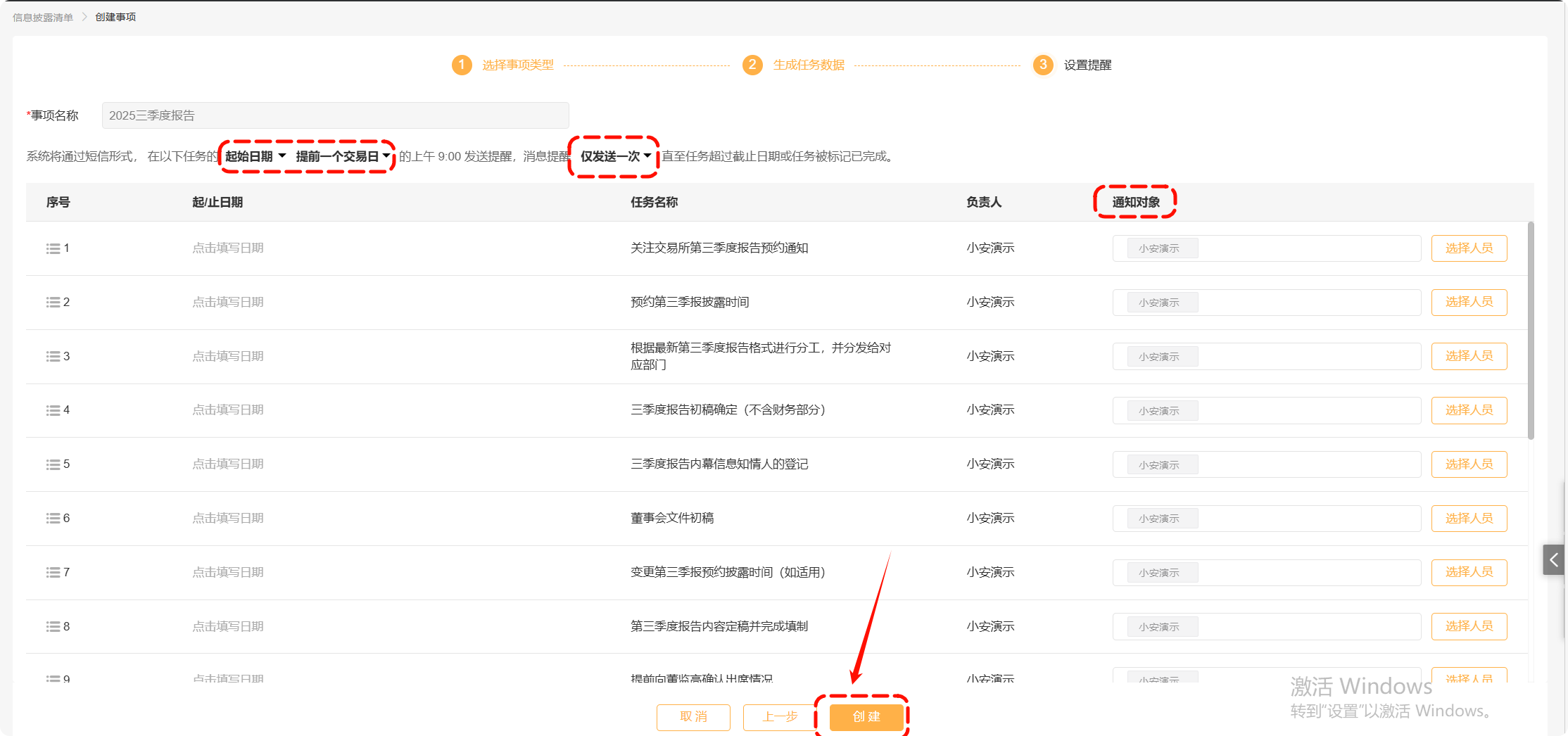 点击下一步,生成任务数据,先对编辑权限范围进行选择,再补充任务的起/止时间后点击下一步
