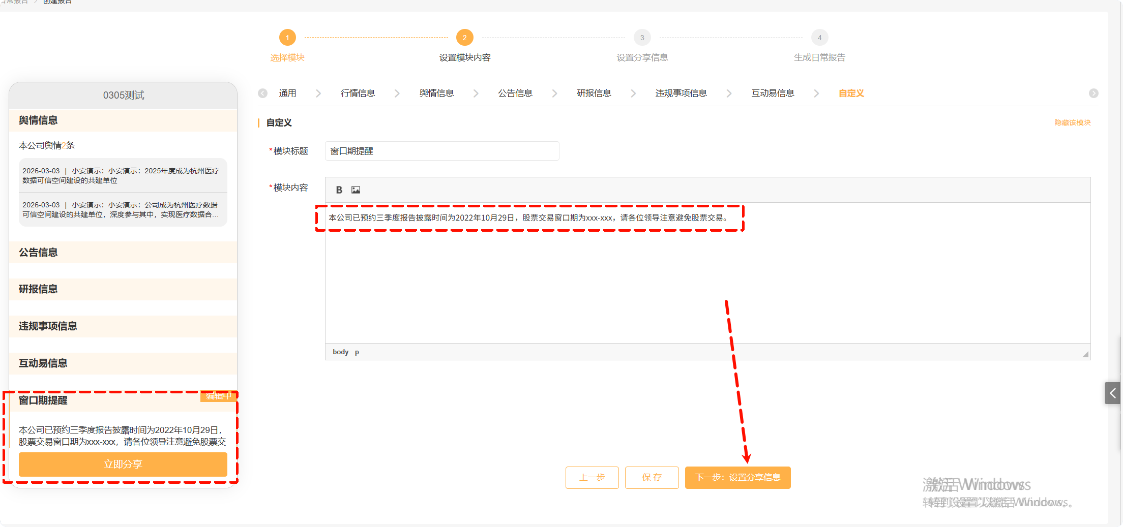 点击下一步:设置分享信息。