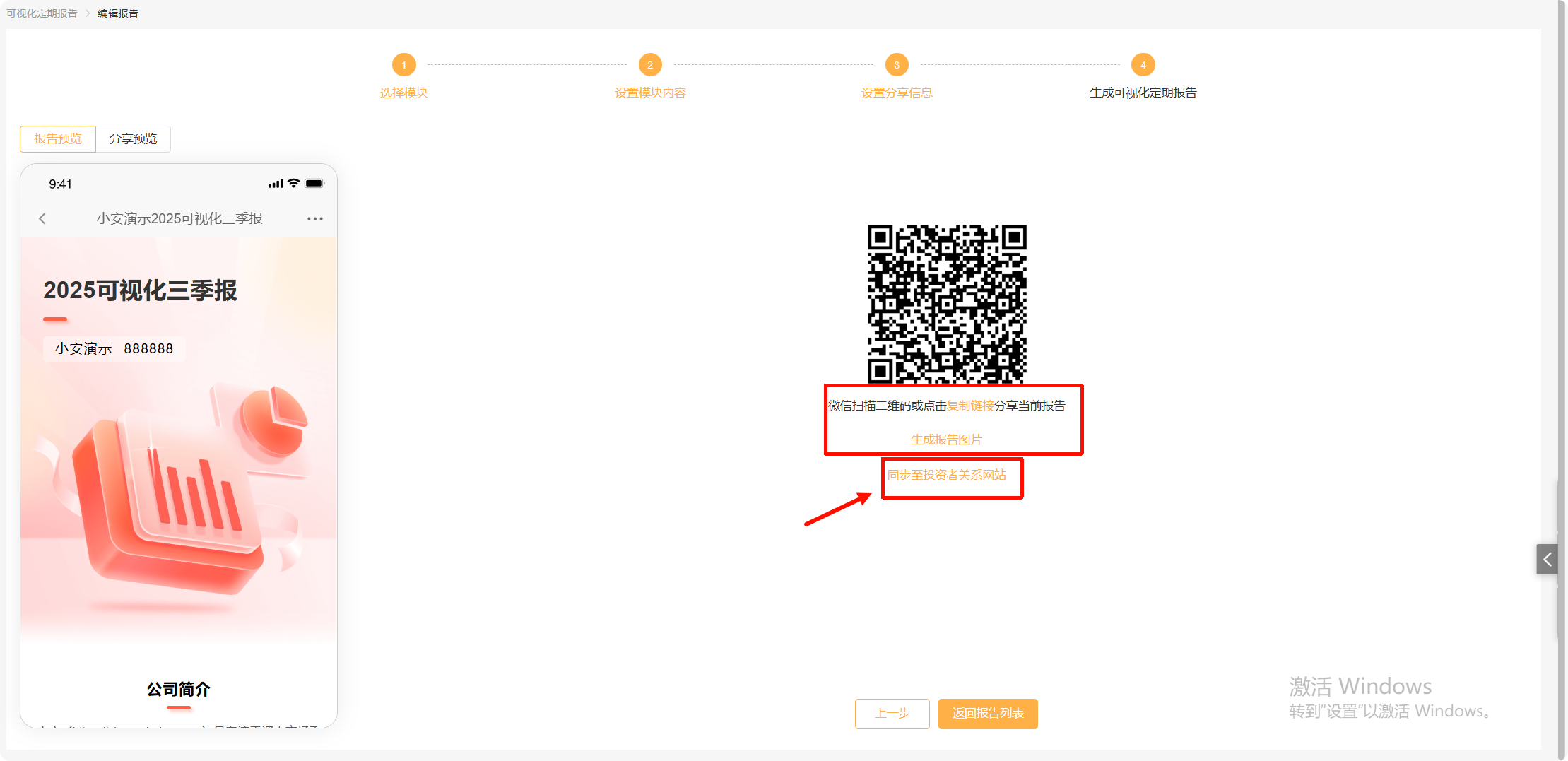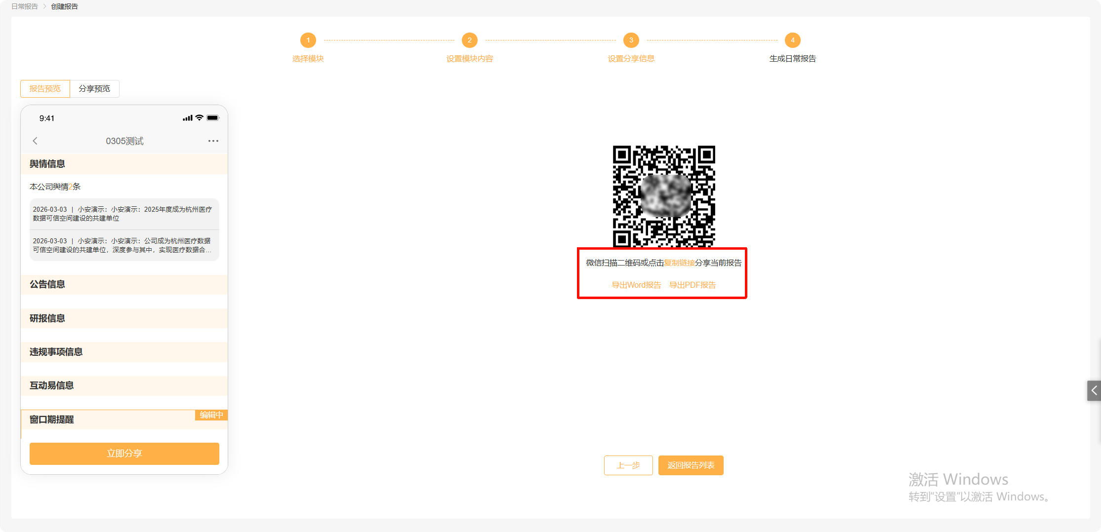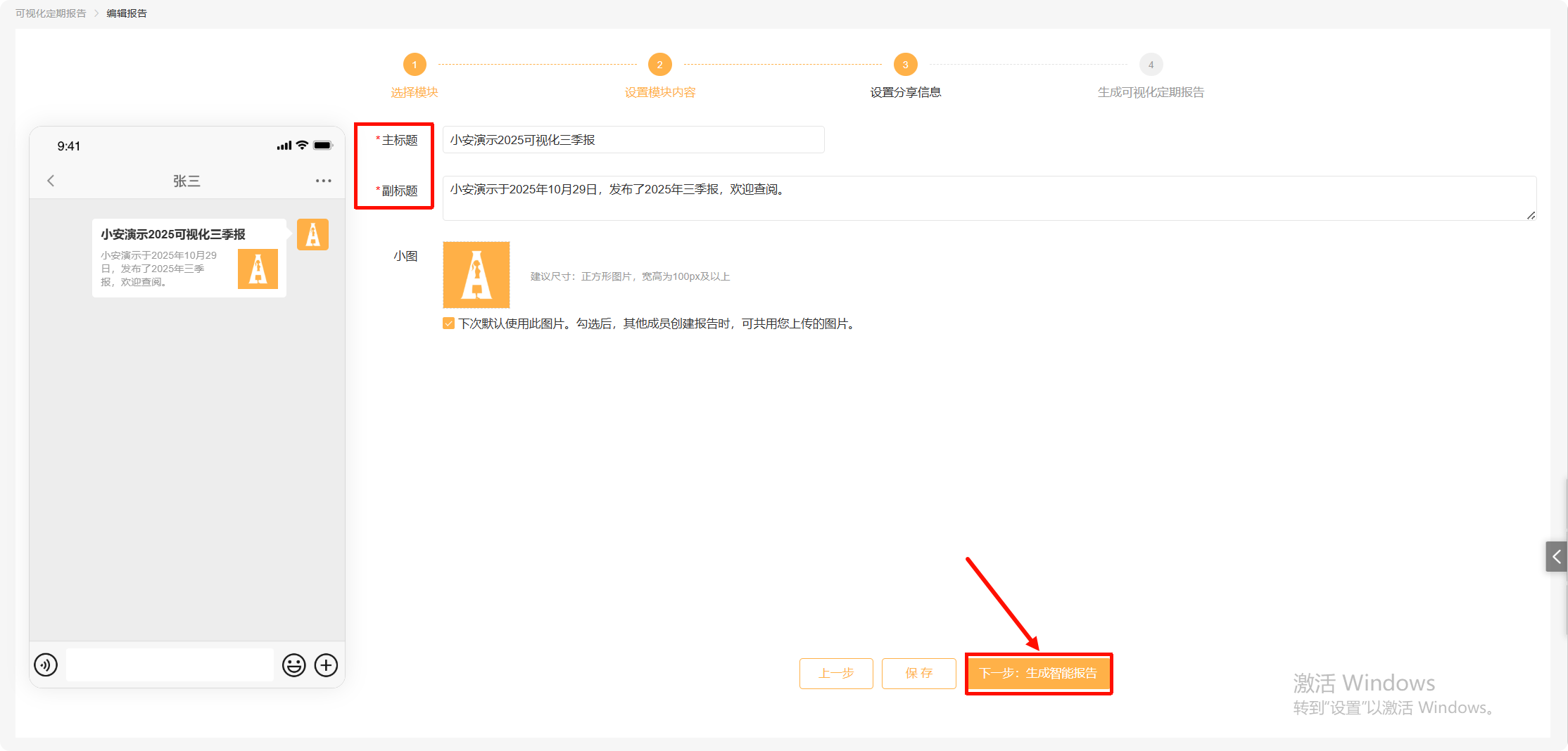 点击下一步:生成智能报告。预览检查无误后,可以生成分享版报告。