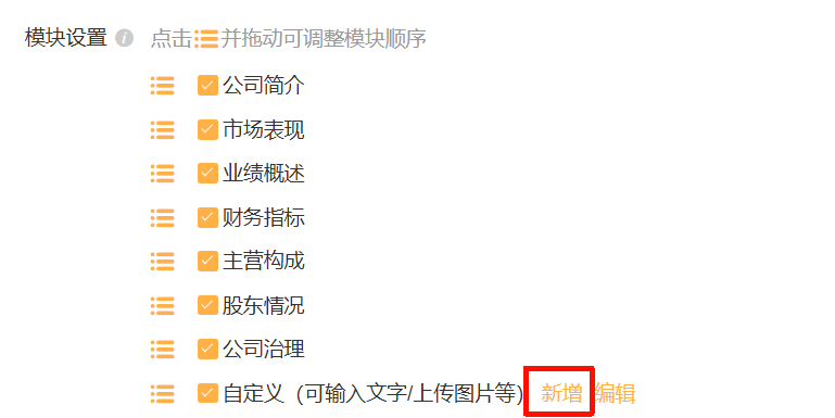 自定义模块支持上传文字或图片形式内容。
