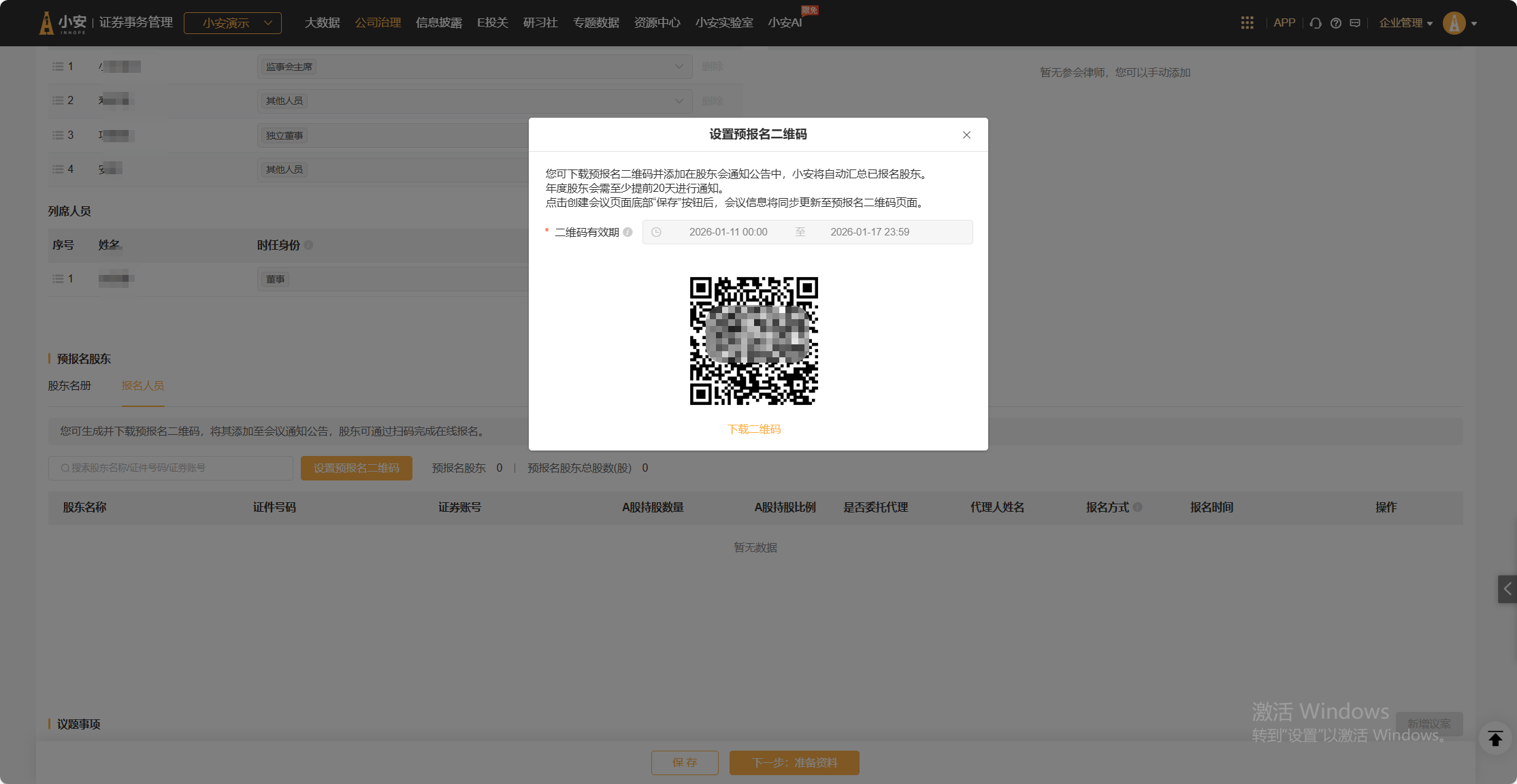 可以通过股东名册导入预报名或者通过扫描报名二维码登记股东报名信息;