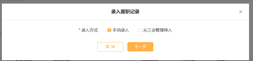 点击“录入履职记录”,有手动录入和从三会管理导入两种方式。