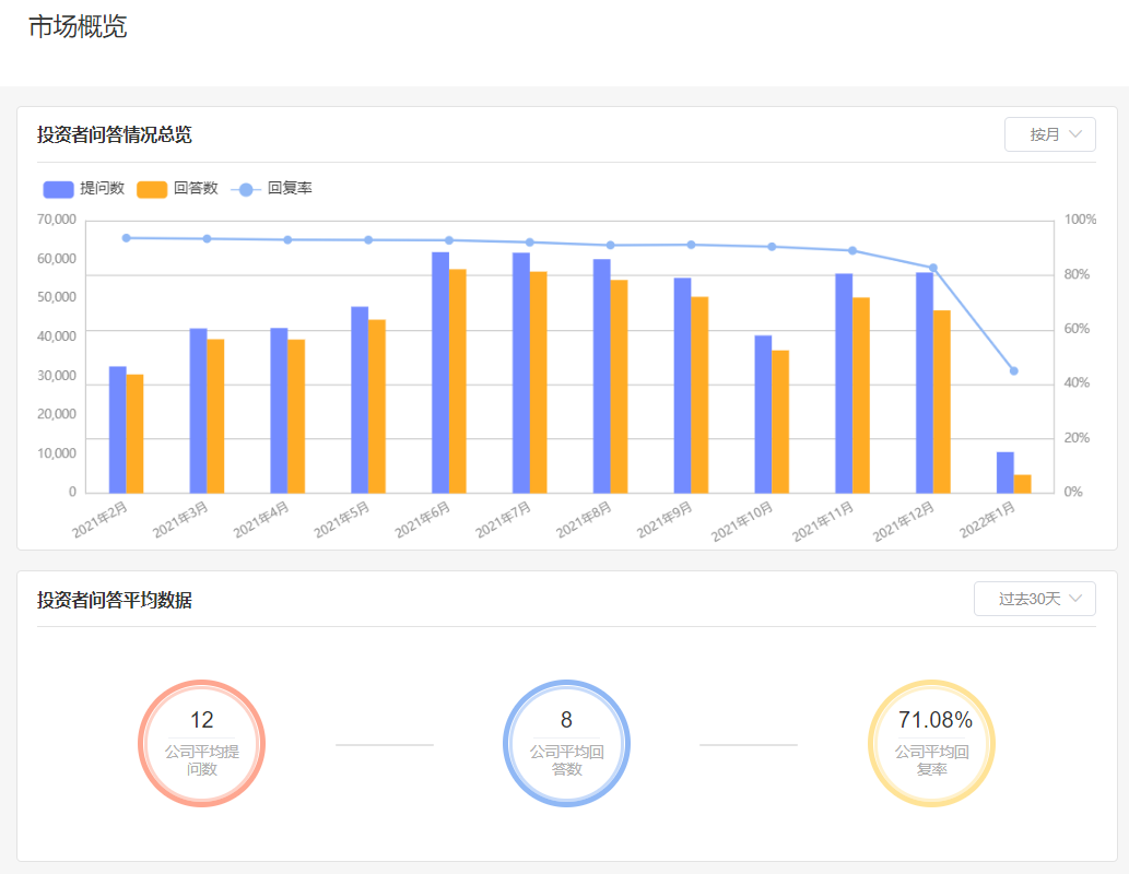 在【市场概览】模块,可通过可视化图表清晰查看全市场的投资者问答情况。