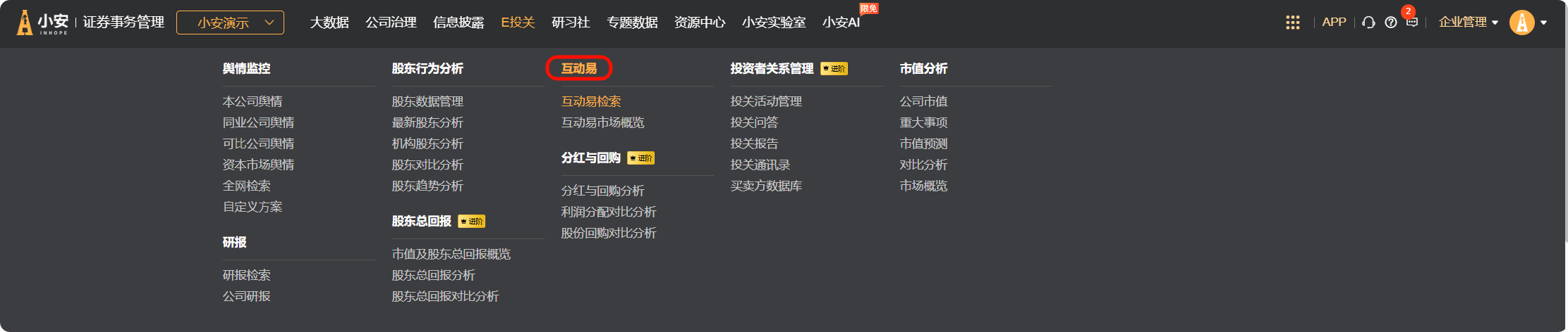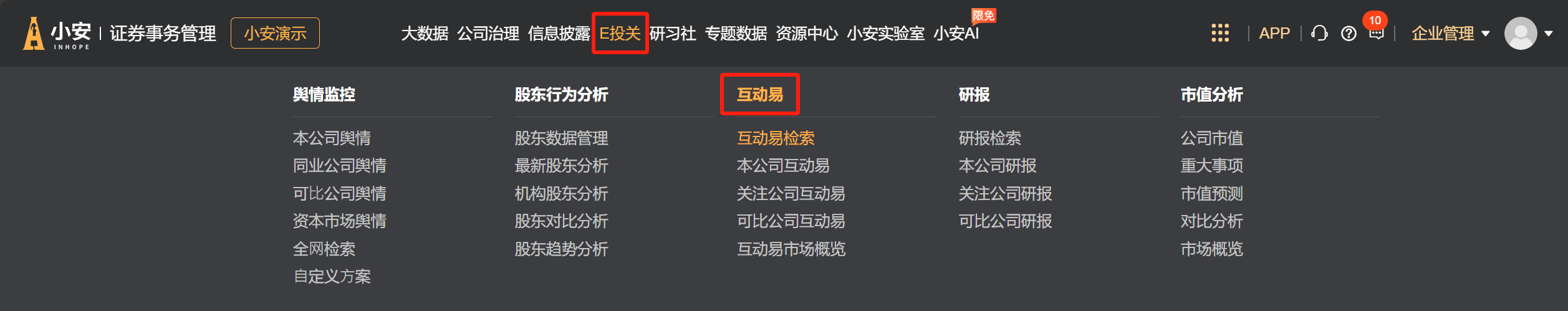 点击菜单栏【E投关-互动易/E互动】进入该模块。