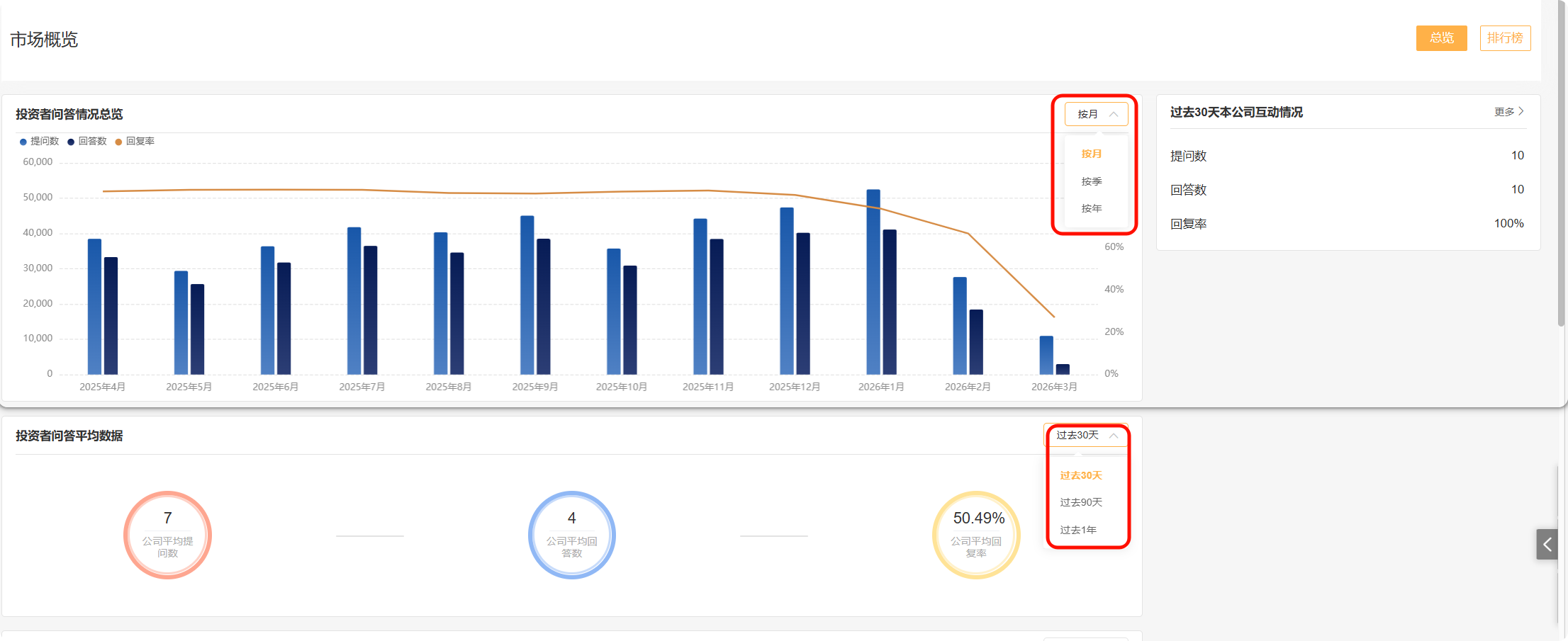 在【市场概览】模块,可通过可视化图表或者排行版的方式,清晰查看全市场的投资者问答情况。